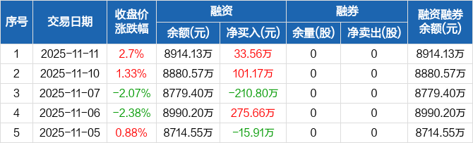 松原安全:融资净买入33.56万元,融资余额8914.13万元(11-11)