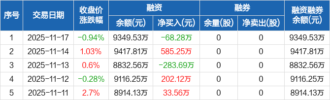 松原安全:融资净偿还68.28万元,融资余额9349.53万元(11-17)