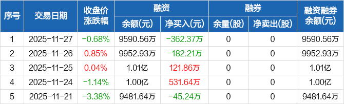 松原安全:融资净偿还362.37万元,融资余额9590.56万元(11-27)