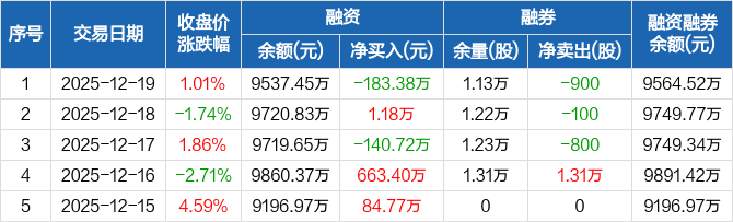 松原安全:融资净偿还183.38万元,融资余额9537.45万元(12-19)