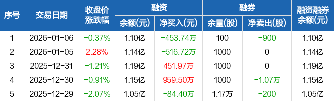 松原安全:融资净偿还453.74万元,融资余额1.1亿元(01-06)