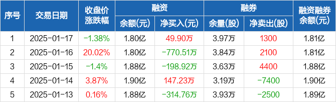 火星人:融资净买入49.9万元,融资余额1.8亿元(01-17)