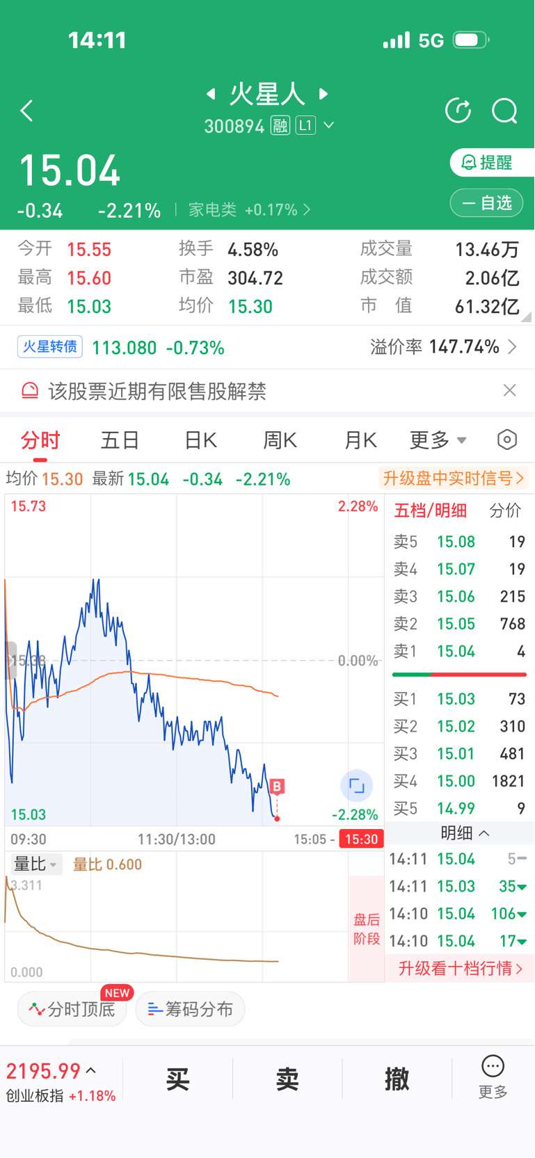 $火星人(SZ300894)$ 先打个底