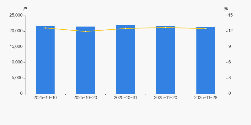 2025年10月10日至今,公司股东户数有所下降,区间跌幅为1.92%。2025年10月10日至2025年11月28日区间股价下降1.11%。