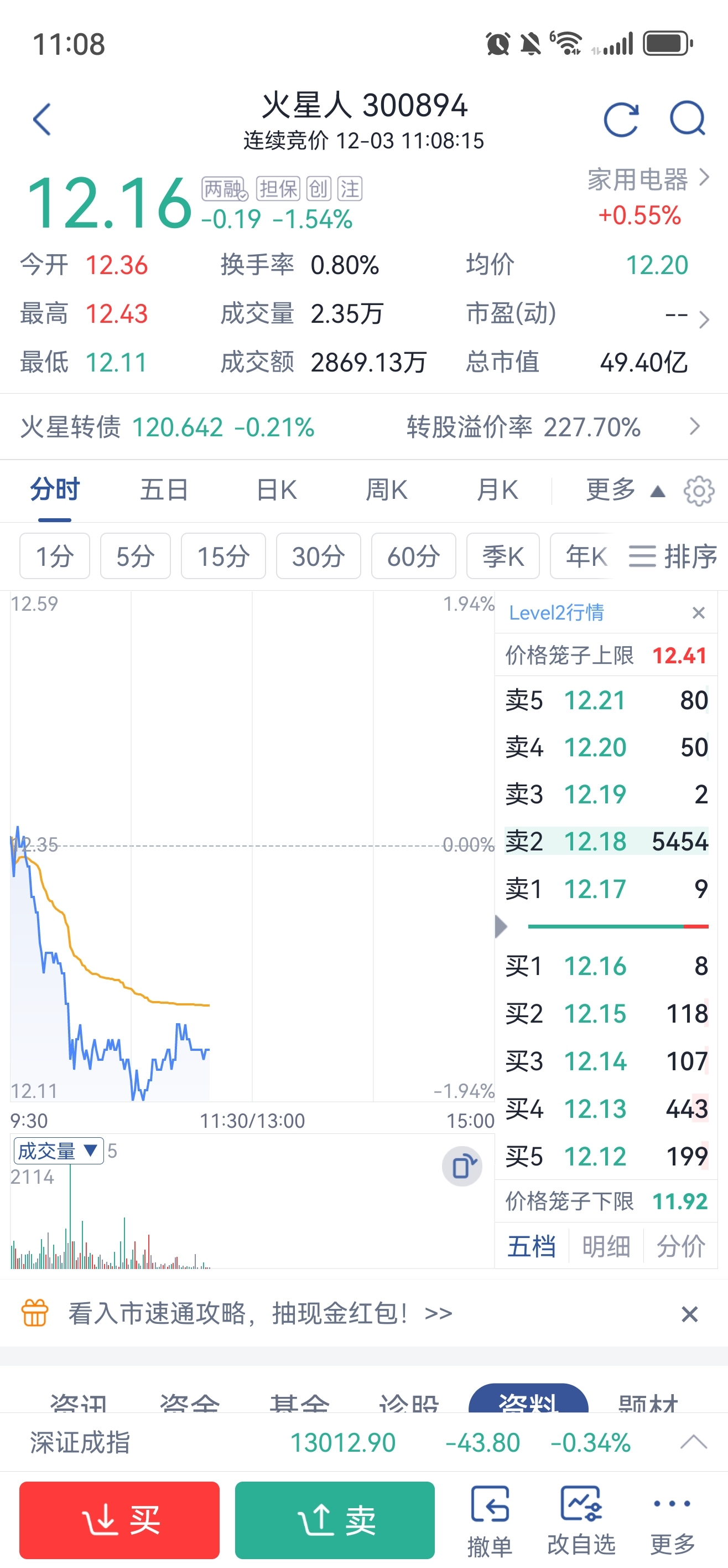$火星人(SZ300894)$ 你看这S-B操盘者,12.18的挂单5454,真像个唱戏,耍猴的SB,GOU一样的。