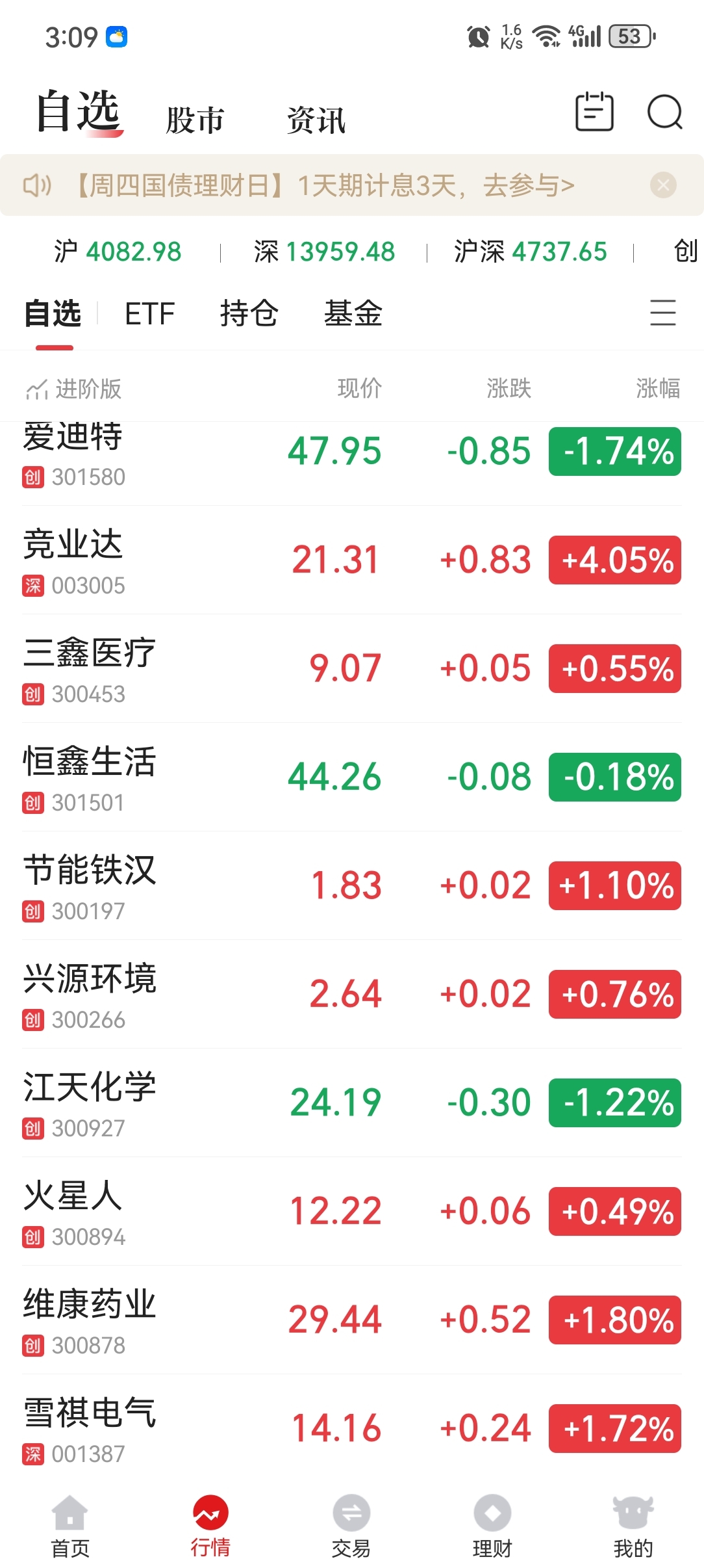 $火星人(SZ300894)$ 啥也没捞到,就竞业达涨了一点。。。明天过后,就收贴了,下周要调整了。