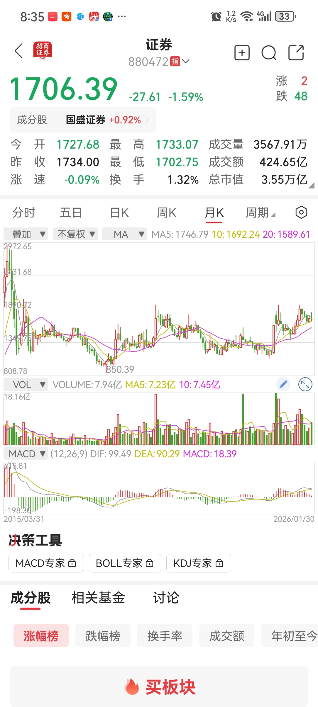 下个月券商有一波上涨,下个月周一出买点,往下走就出买点了,关注三只票,基本上大部