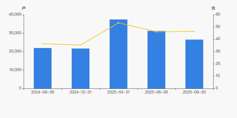2024年9月30日至今,公司股东户数显著增长,区间涨幅为20.80%。2024年9月30日至2025年9月30日区间股价上涨27.06%。