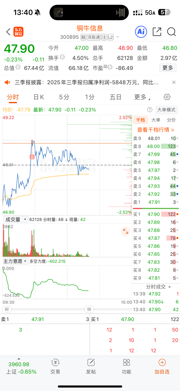 $铜牛信息(SZ300895)$ 加仓加崩了