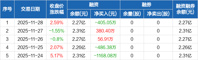 铜牛信息:融资净偿还405.05万元,融资余额2.27亿元(11-28)
