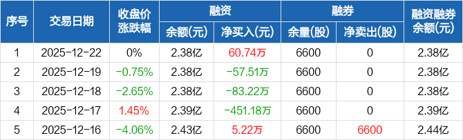 铜牛信息:融资净买入60.74万元,融资余额2.38亿元(12-22)