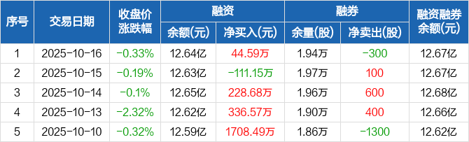 爱美客:融资净买入44.59万元,融资余额12.64亿元(10-16)
