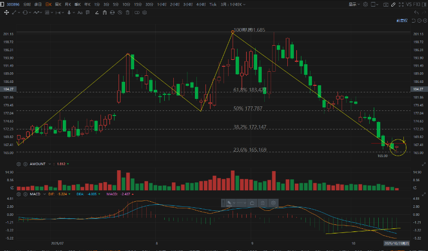 60分钟下跌背离,日线级别底观察构筑情况,量能和个股行业情况暂无配合,只能从赔率