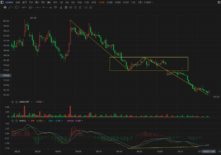 60分钟下跌背离,日线级别底观察构筑情况,量能和个股行业情况暂无配合,只能从赔率上博弈。