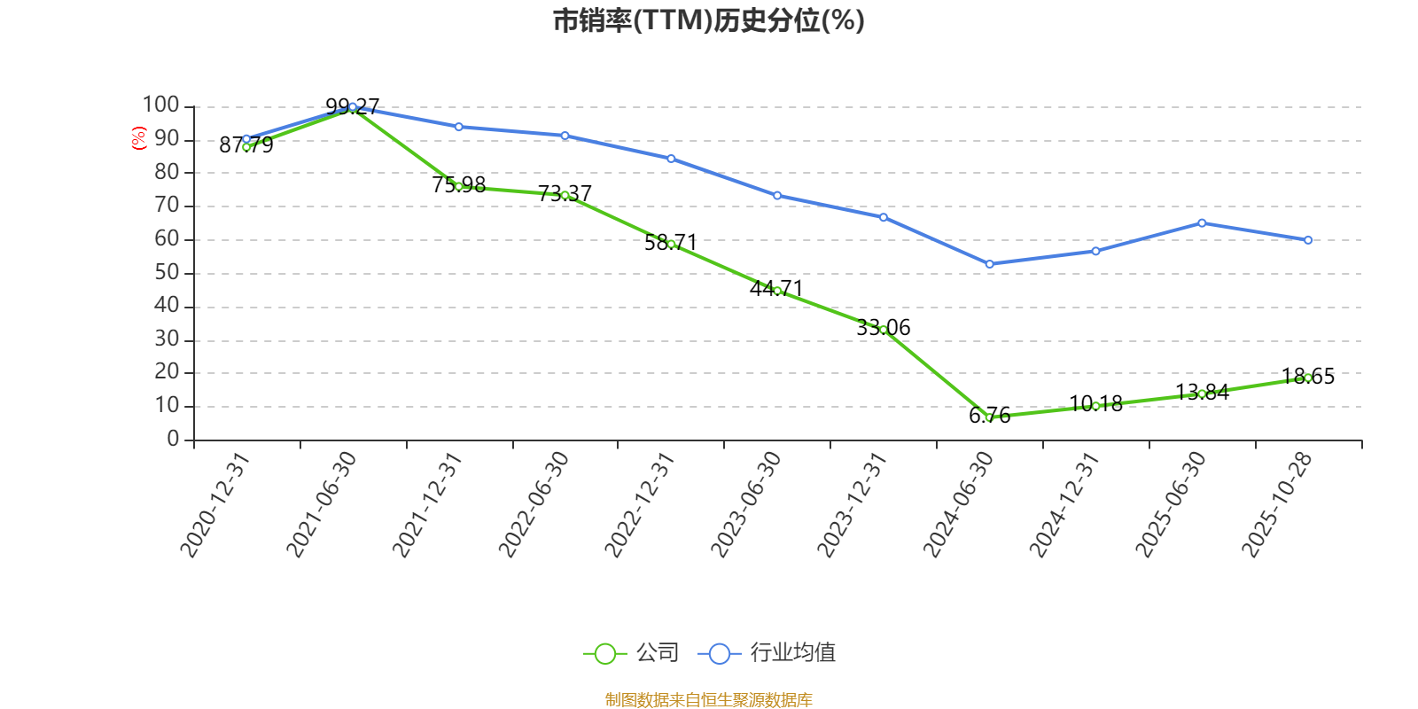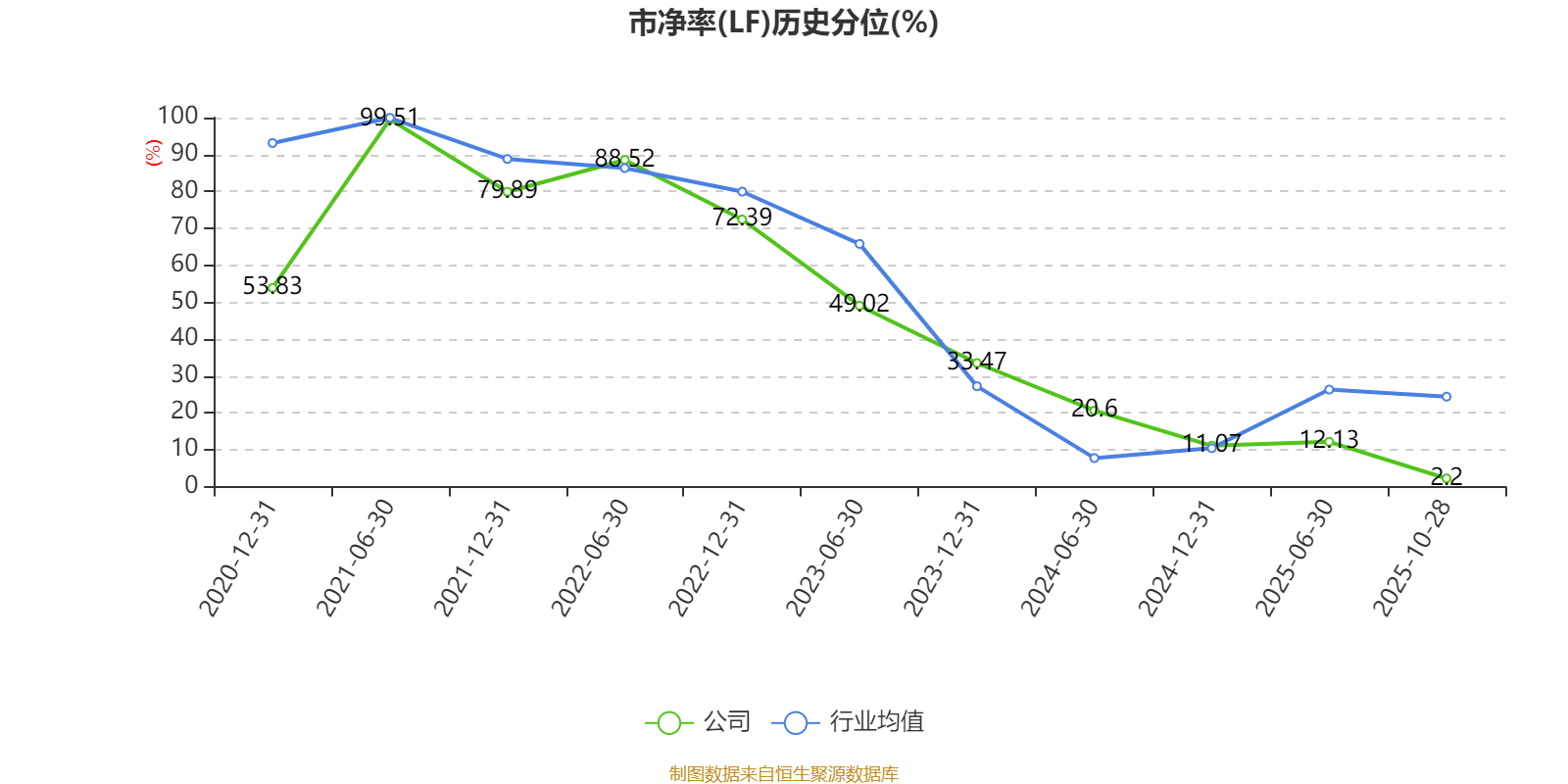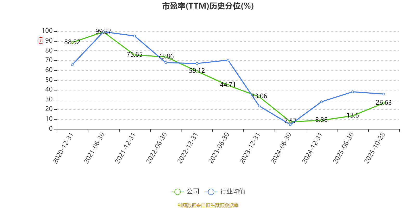 市盈率、市净率为负时,不显示当期分位数,会导致折线图中断。