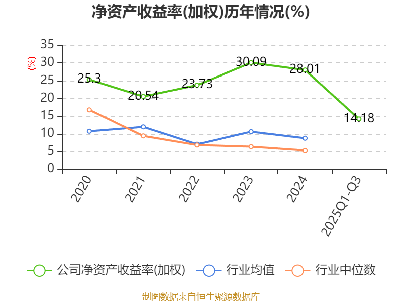 盈利能力方面, 2025年前三季度公司加权平均净资产收益率为14.18%,同比下降8.93个百分点。公司2025年前三季度投入资本回报率为13.66%,较上年同期下降8.38个百分点。