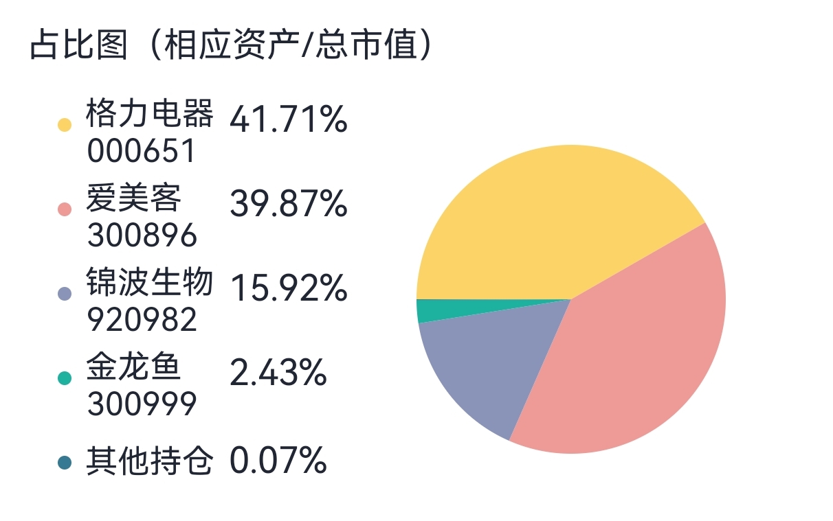爱美客仓位接近半仓,锦波仓位较小,格力仓位没有变化。