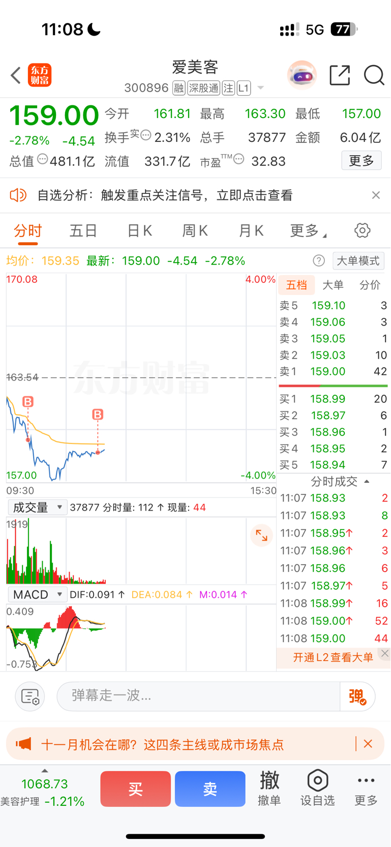 $爱美客(SZ300896)$ 再跌就真的加不动了.