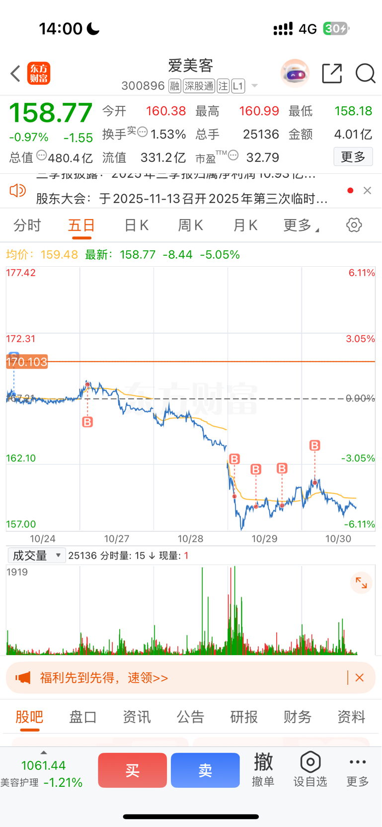 $爱美客(SZ300896)$ 170的成本,再跌真的加不动了.