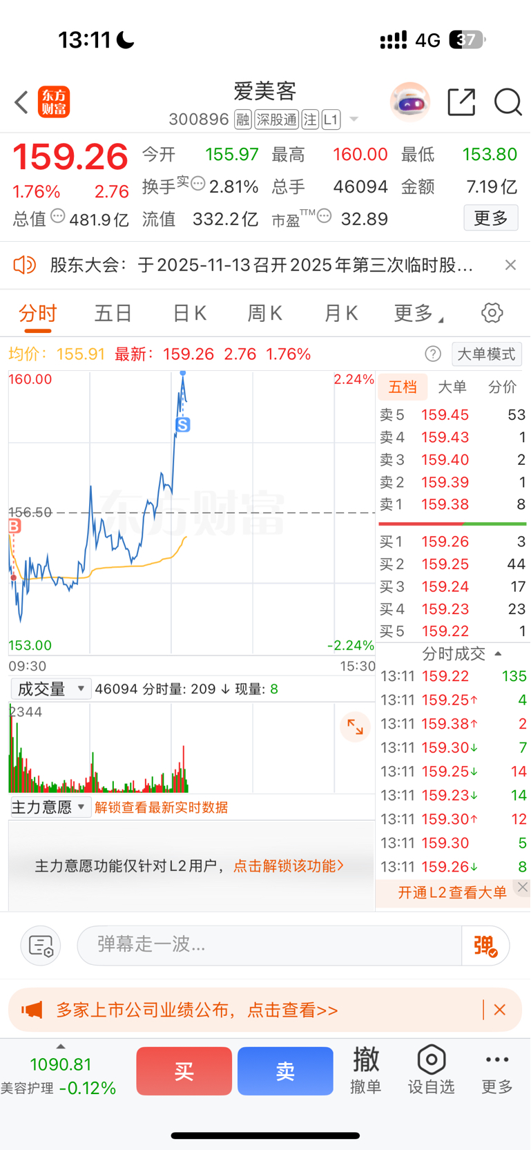 $爱美客(SZ300896)$ 应该没卖飞吧.