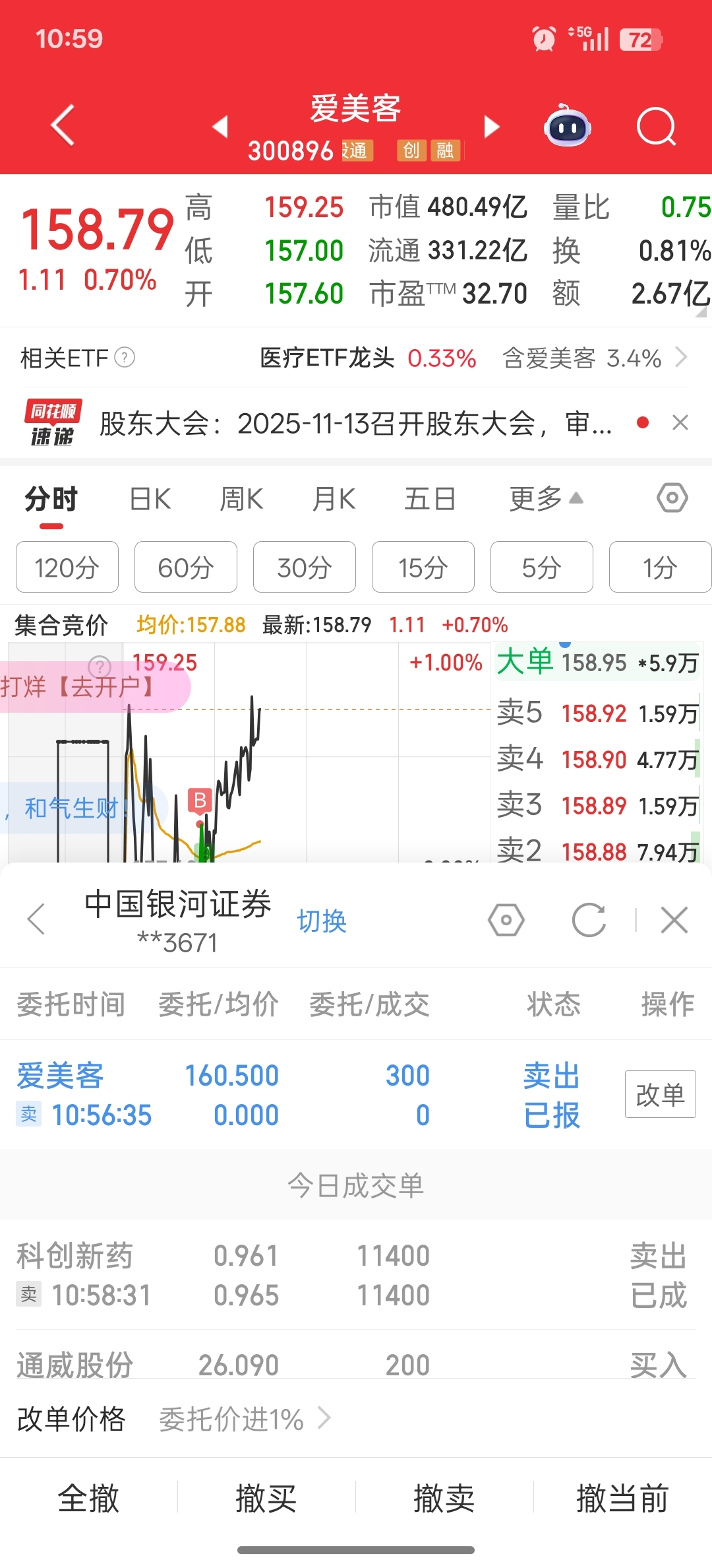 $爱美客(SZ300896)$ 挂单160.50