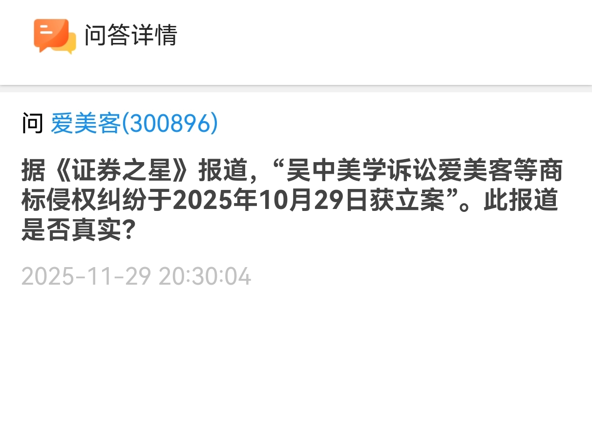 我已经在向爱美客公司核实江苏吴中诉讼立案的真实性,希望公司能回复我。下图这家傻媒