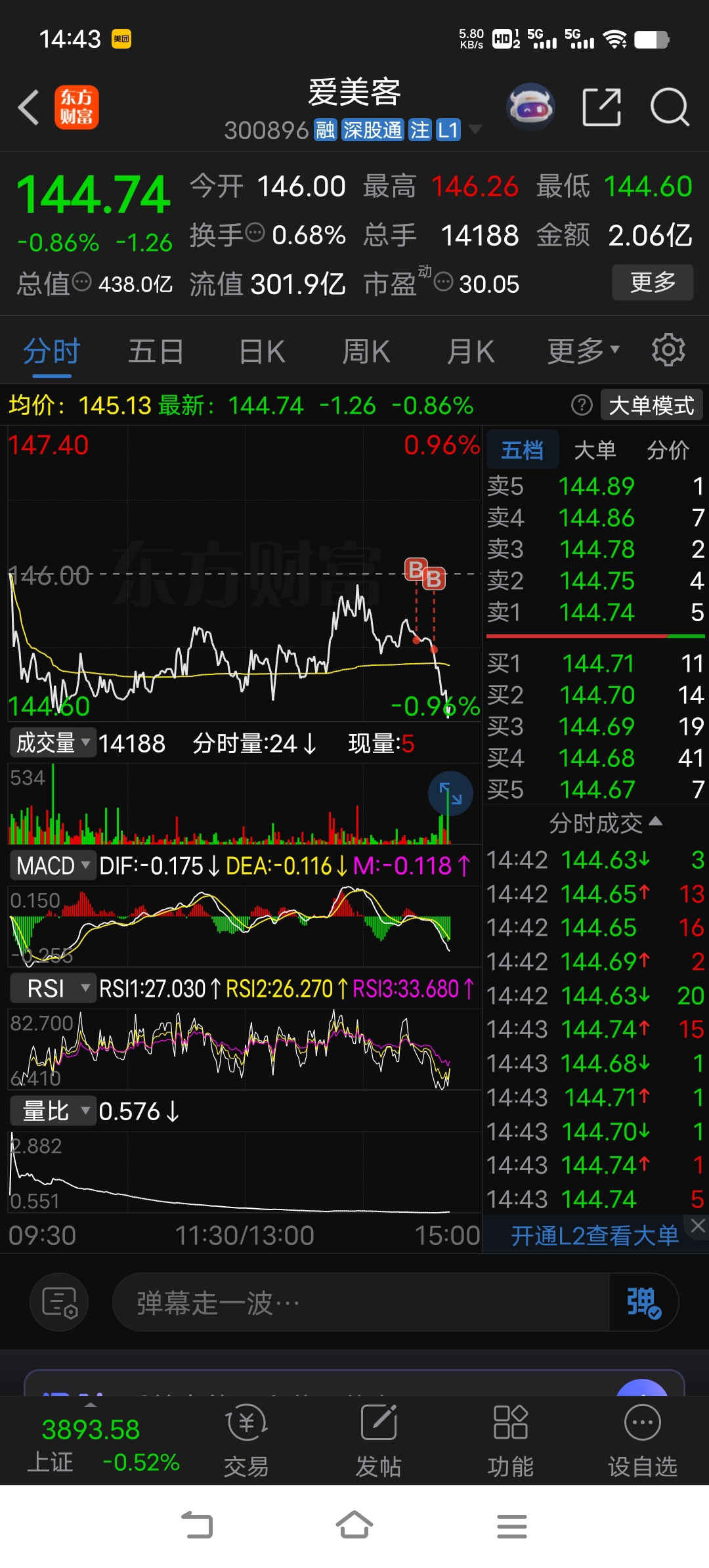 $爱美客(SZ300896)$ 一买就崩,明天卖了!