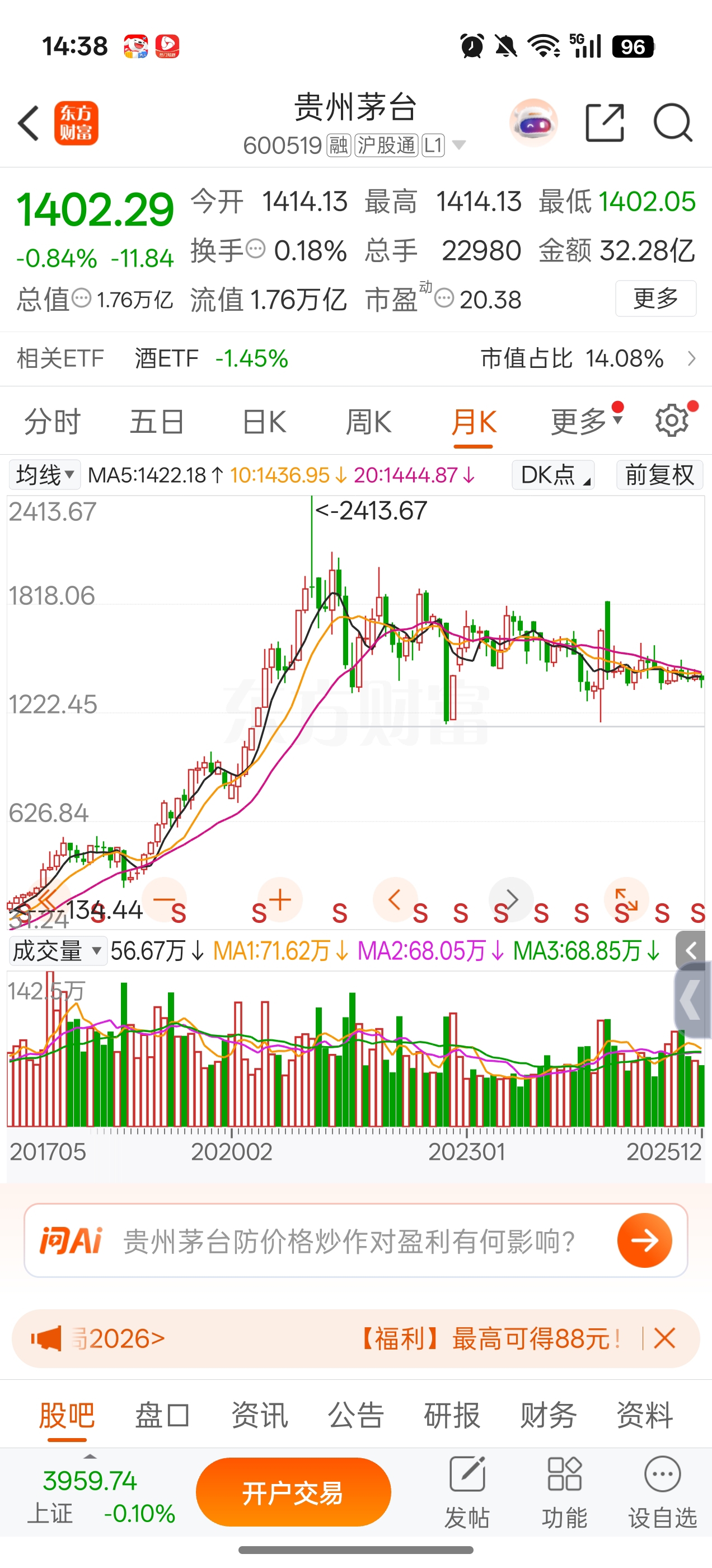 看到还有人说,老登跌,小登疯涨。老登今年没涨是真的,绝大部分都是横盘震荡或者微跌。 有几个跟爱跌客似的,大盘暴涨,它一望无际暴跌,只有一个原因,公司出问题,逻辑出问题了,远远看不到尽头。