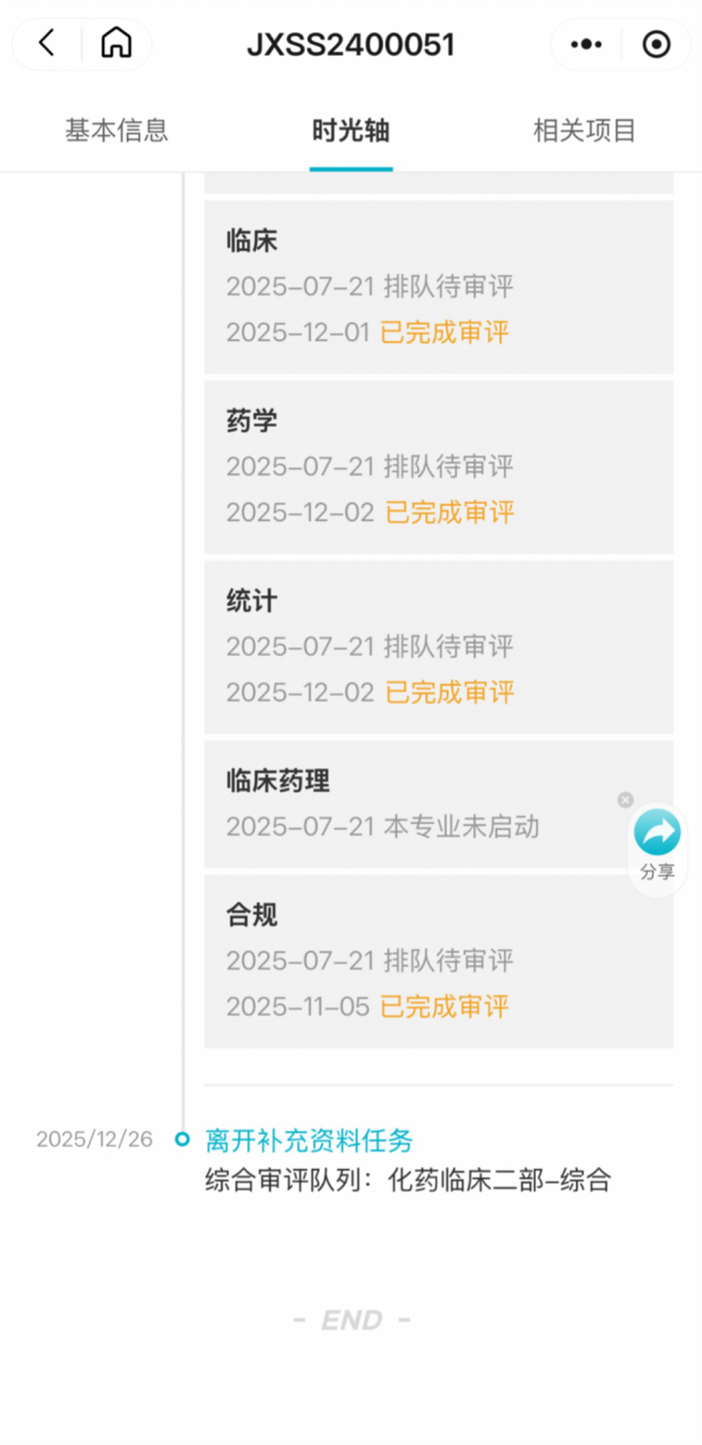 从2025年12月26日,JXSS2400051离开药审中心开始至今已经有1234567天了,按照《药品注册管理办法》行政审批阶段不超过20个工作日,如果获批,拿证时间不超过10个工作日。