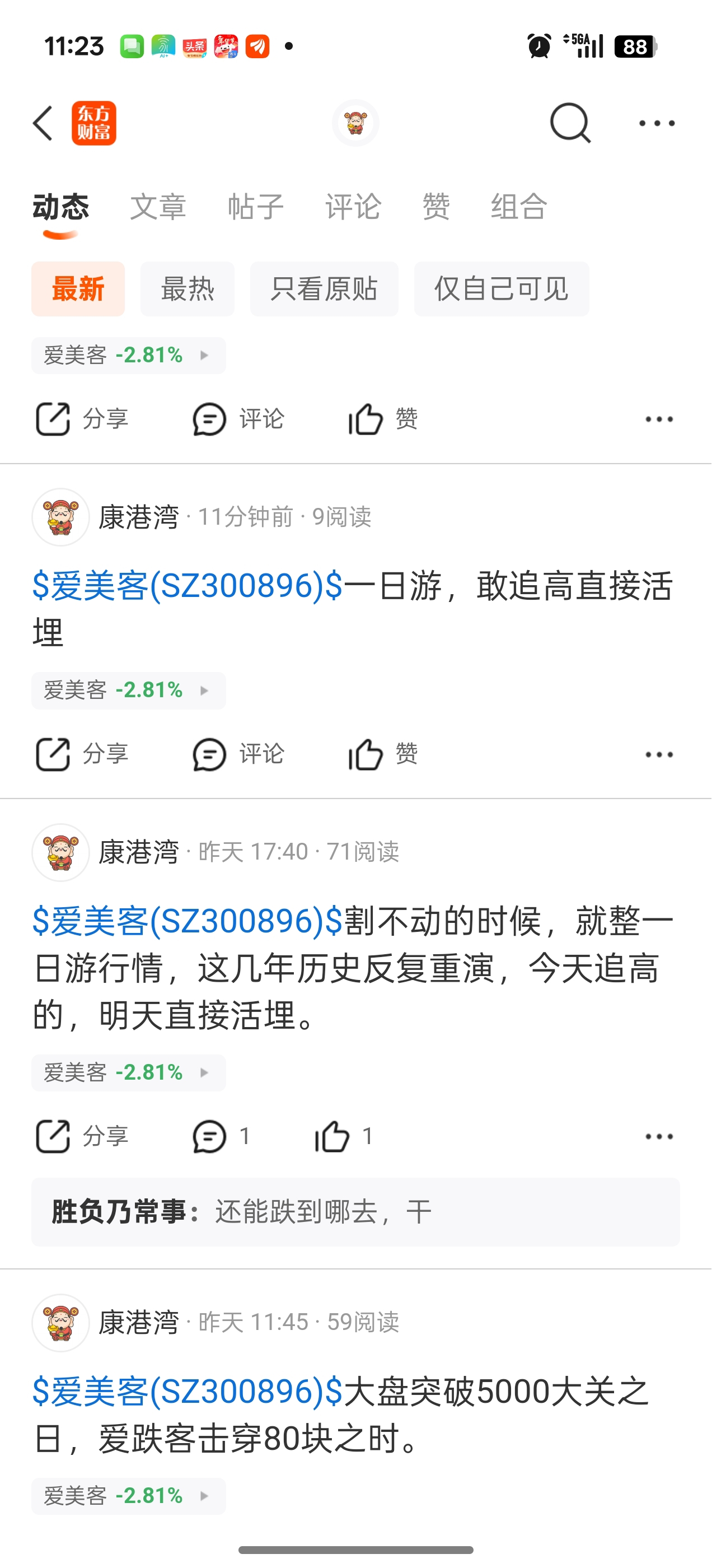 温馨提示: 1.根据《证券法》规定,禁止编造、传播虚假信息或者误导性信息,扰乱证券市场;2.用户在本社区发表的所有资料、言论等仅代表个人观点,与本网站立场无关,不对您构成任何投资建议。用户应基于自己的独立判断,自行决定证券投资并承担相应风险。《东方财富社区管理规定》