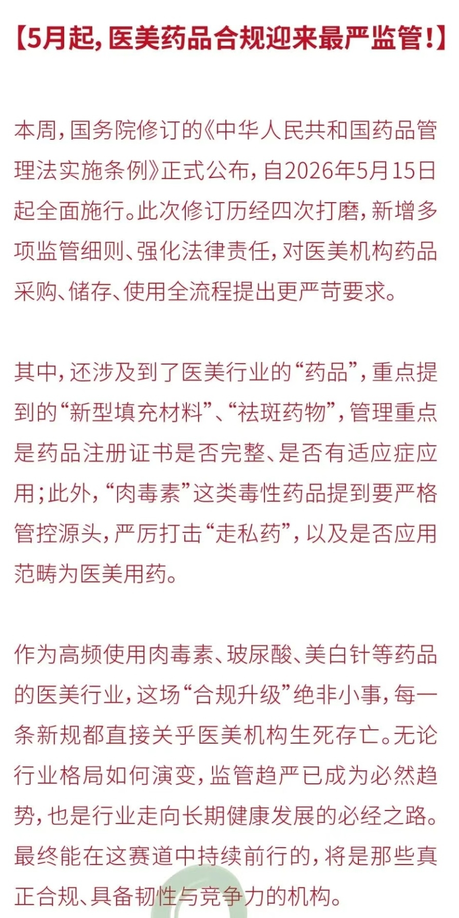 医美行业的"药品",重点提到的"新型填充材料"、"祛斑药物",管理重点是药品注册