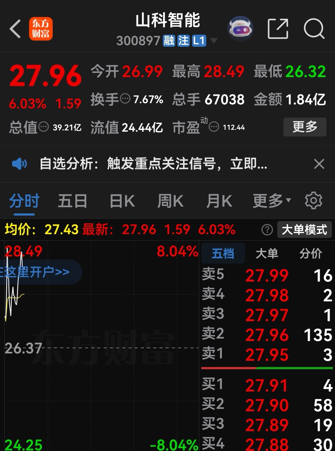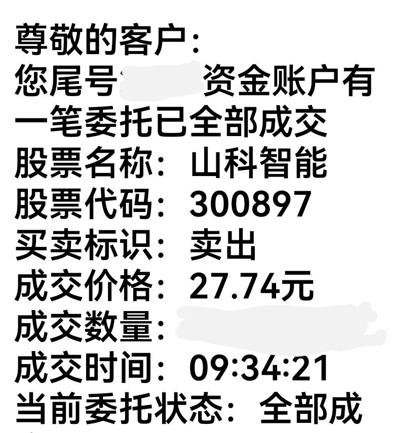 以27.38下单卖出24.58买的山科智能,结果以27.74成交了,卖是卖掉了,