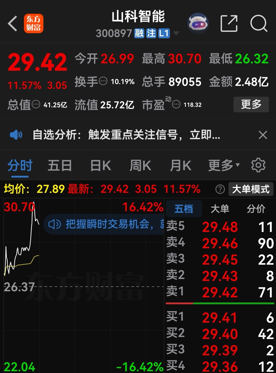 又成交了一笔以30.68挂单卖出的山科智能,还能来个涨停嘛!真的希望明天再来个涨