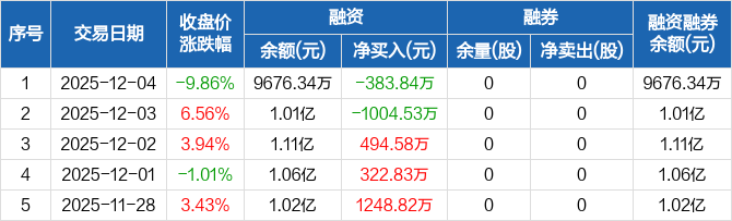 山科智能:融资净偿还383.84万元,融资余额9676.34万元(12-04)