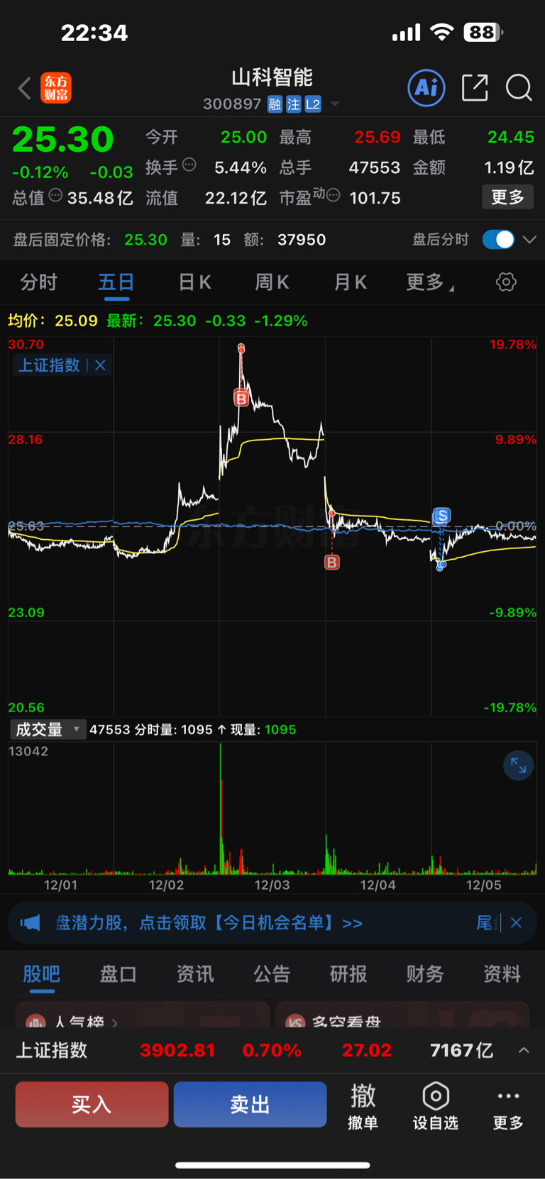 $山科智能(SZ300897)$ 三天亏了4万8千块血亏呀