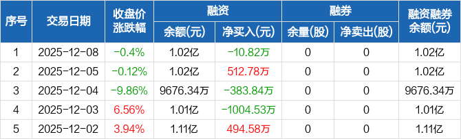 山科智能:融资净偿还10.82万元,融资余额1.02亿元(12-08)