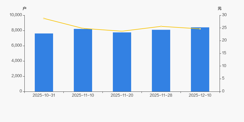 截至2025年12月10日,公司最新总股本为1.4亿股,其中流通股本为8741.99万股。户均持有流通股数量由上期的1.08万股下降至1.04万股,户均流通市值25.61万元。