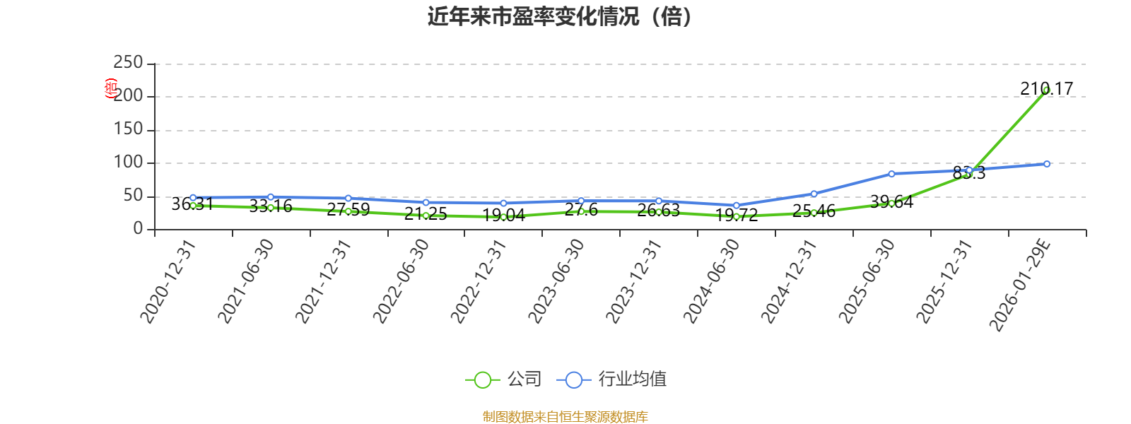 以本次披露业绩预告均值计算,公司近年市盈率(TTM)图如下所示: