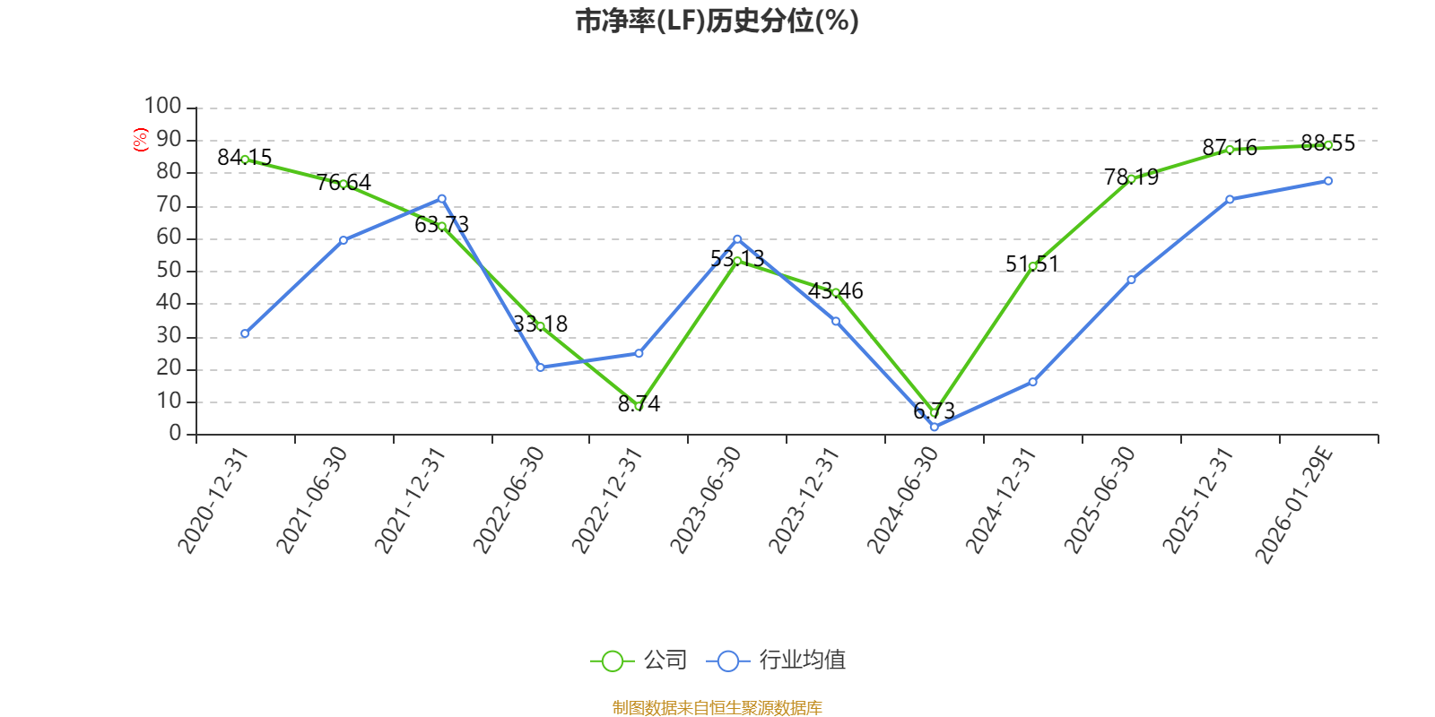 市盈率、市净率为负时,不显示当期分位数,会导致折线图中断。
