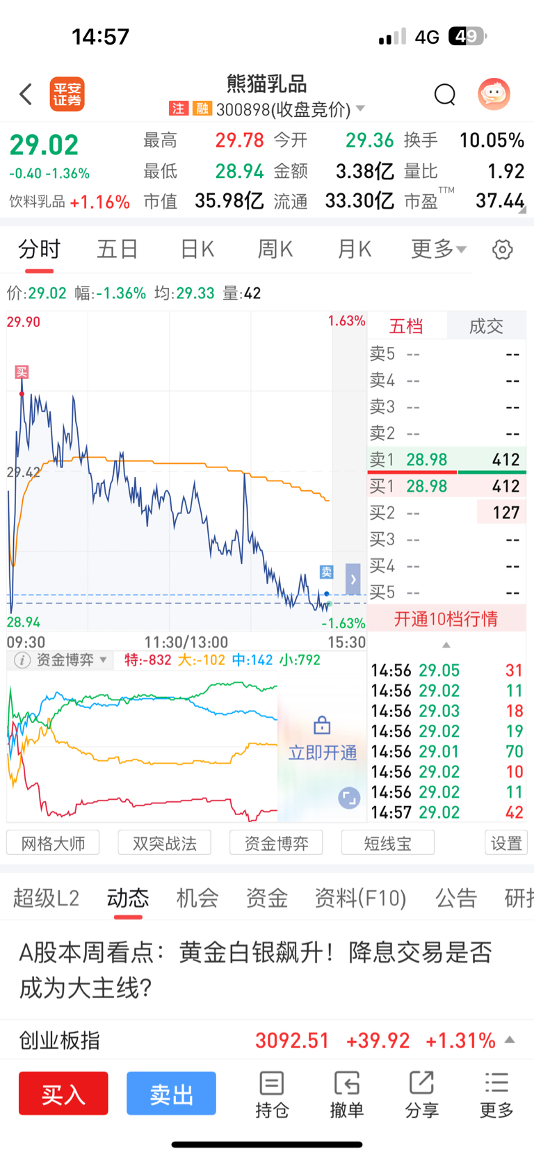 $熊猫乳品(SZ300898)$ 一天的心情都没了哎