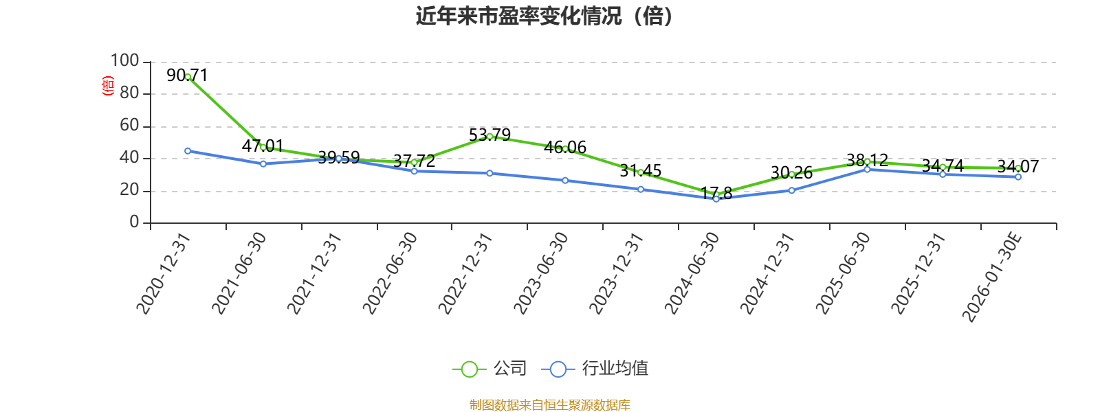 以本次披露业绩预告均值计算,公司近年市盈率(TTM)图如下所示: