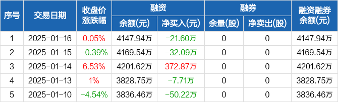 上海凯鑫:融资净偿还21.6万元,融资余额4147.94万元(01-16)