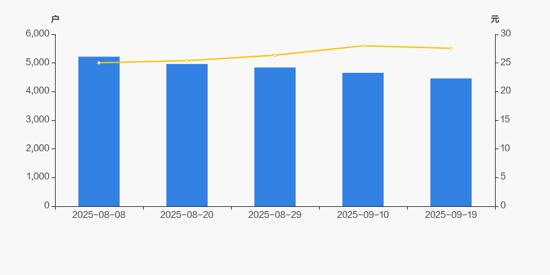 2025年8月8日至今,公司股东户数显著下降,区间跌幅为14.54%。2025年8月8日至2025年9月19日区间股价上涨10.10%。