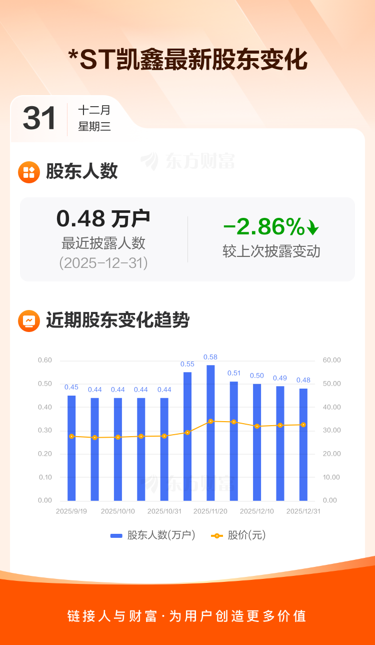 *ST凯鑫:截至12月31日最新股东户数4784户,较上期减少2.86%