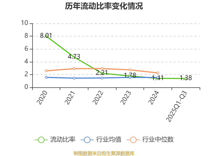 2025年前三季度,公司流动比率为1.38,速动比率为0.82。