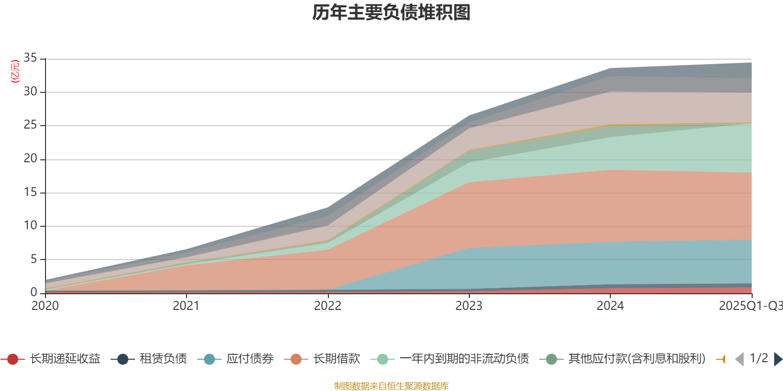 负债重大变化方面,截至2025年三季度末,公司一年内到期的非流动负债较上年末增加51.31%,占公司总资产比重上升4.81个百分点;其他应付款(含利息和股利)较上年末减少99.35%,占公司总资产比重下降3.3个百分点;长期应付款合计较上年末增加175.73%,占公司总资产比重上升1.79个百分点;长期借款较上年末减少6.77%,占公司总资产比重下降1.74个百分点。