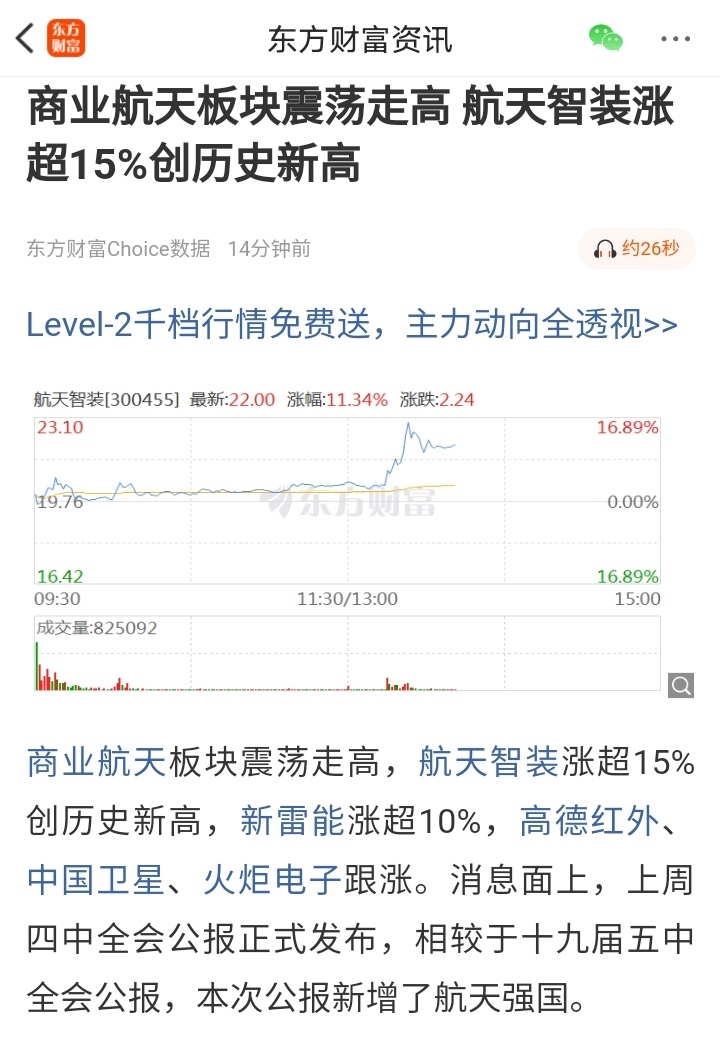 亏损严重的航天智装拉涨了!商业航天板块震荡走高,航天智装涨超15%创历史新高,新