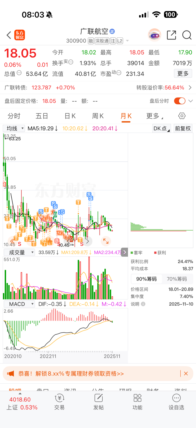 $广联航空(SZ300900)$ 这个股的确是个垃圾,我持有1500多天,不断加仓做T,后来回本挣个利息跑了,今天回来看看,这可能是我唯一一只卖了没后悔的