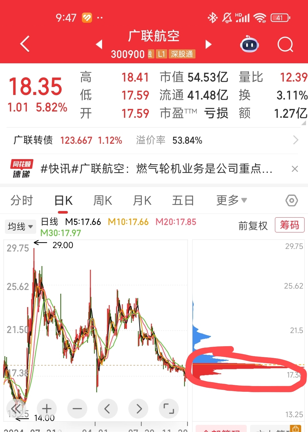 $广联航空(SZ300900)$ 站稳18,上方无阻力,冲啊,一路向上