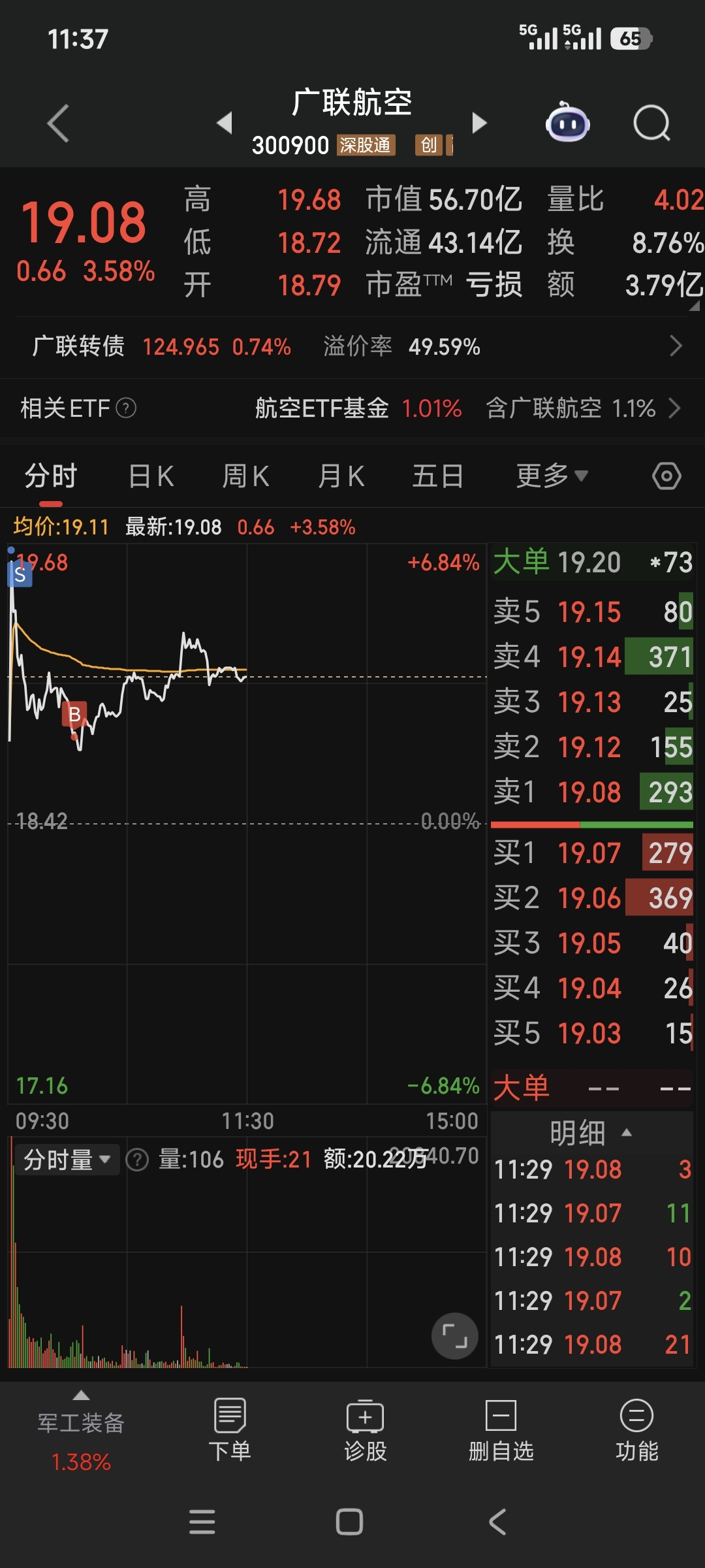 $广联航空(SZ300900)$ 后悔接回来了,明天肯定低开低走